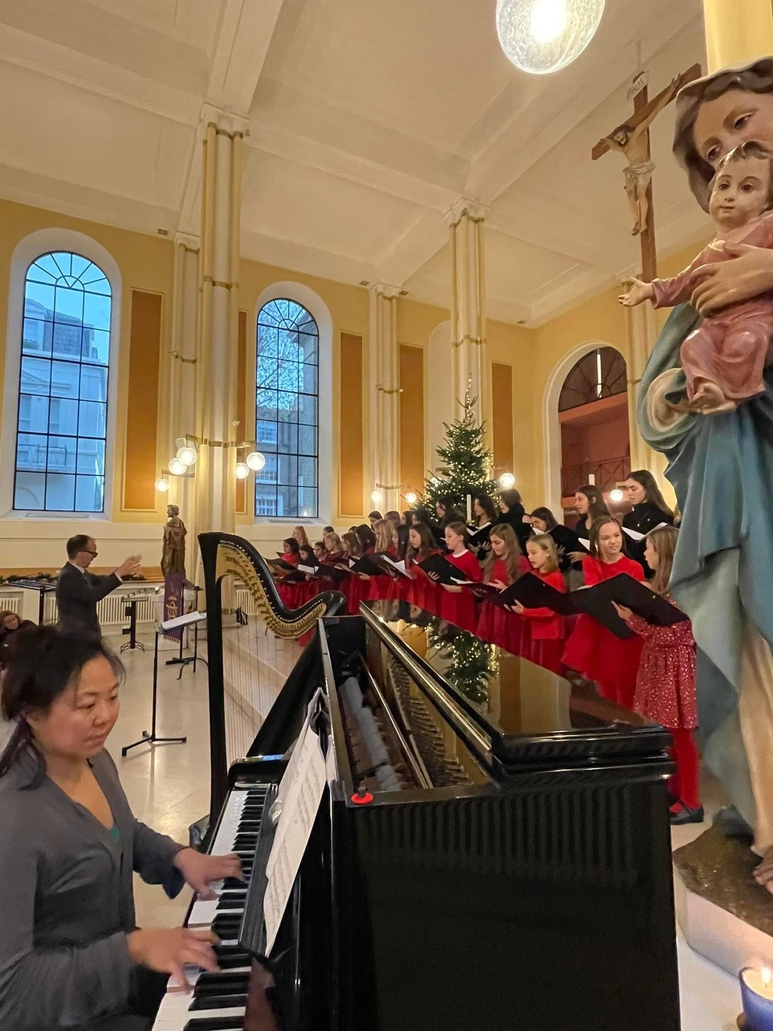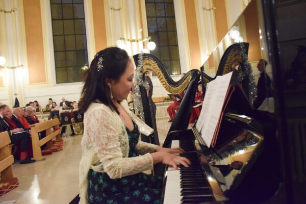“This year we were delighted to welcome back the beautiful Soloist Natalie Rushdie,” says Patricia “who joined the angelic voices of the choirs of Queen’s Gate School in filling the church as everyone sang their hearts out, Roy Bilham and Thames Fanfare Brass were wonderful as always and Lesley Magee had everyone captivated by her beautiful harp playing.”